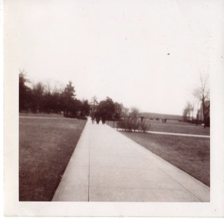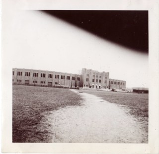 Chuck’s friend Walt Huebner in front of the the Main Administration Building.