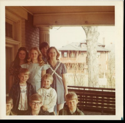 The Witt kids. It’s a little off-center, Jimmy’s face is cut off, and my mom’s eyes are closed, but it’s actually a great photo of the nine Witt kids all assembled on their porch on Fairgreen Avenue on Youngstown’s North Side. This photo appears to have been taken around 1971.