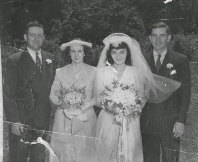 According to news reports, gladioli and larkspur graced the altar for the wedding of my great-aunt Kathleen Groucutt and Bob Sullivan on 13 Jul 1946. Kathleen’s sister, my grandmother Jean (Lowry), was maid of honor. Bob’s friend Phil Welsh served as best man. Kathleen and Bob were married at Saint Columba Cathedral by Rev. James Malone. Fr. Malone would become bishop of the Diocese of Youngstown in 1968.