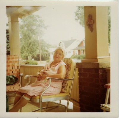 Helen Bixler Witt (1898-1985), photograph, taken at 24 N Osborn Avenue, in about 1977; digital image, photocopy of original, scanned in 2013 by Joseph Lowry; privately held by Marie Dockry, [address for private use], Austintown, Ohio. Woman sitting in a porch chair in housecoat. Provenance is Marie Dockry to Joseph Lowry.