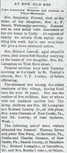 Columbiana County, Ohio, Record of Wills, Last will and testament of Bridget Lowry, pg. 69, 6 Aug 1904; “Ohio, Probate Records, 1789-1996,” database with images, FamilySearch (https://familysearch.org/pal:/MM9.3.1/TH-1961-27622-28206-36?cc=1992421&wc=S24N-3TP:266278701,268149001 : accessed 9 Mar 2025), Wills 1903-1905 vol 19-20, image 395 of 658.