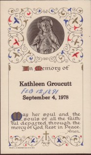 The funeral card for my great grandmother Kathleen Esther (Rogan) Groucutt.