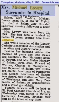 Martin and Margaret Lottman are my 3rd great grandparents. They are buried just feet from the Lowry marker and their granddaughter Anastasia McSweeney.