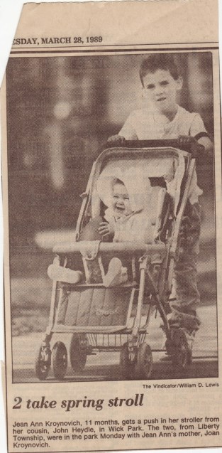 Uncle Dick got out of the army and went back to live with Mother and Daddy Groc on Elm Street, just south of Bissell Avenue, near the park. Daddy Groc used to love to walk in Wick Park, every day, and always in a white shirt and tie, even after he retired. After Louise stole Dick’s heart, Mother and Daddy Groc moved to Cordova, just across from Harding and Rayen. Mother Groc hated to stay alone, so after Daddy Groc died (April 1967) the families took a week at a time sending someone to stay. There was a roll-away cot in the living room. You would just be getting off to sleep when you would be doused with a splash of holy water–Mother Groc blessing the four corners of the room.