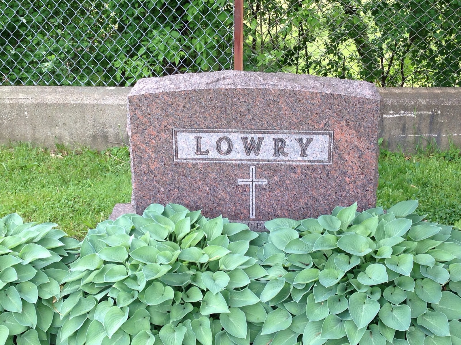 I took some time out this Memorial Day to visit Calvary Cemetery in Youngstown, Ohio. Calvary is the ‘home’ cemetery, and countless relatives are buried there. My Lowry great grandparents and grandparents’ graves are just inside the gate in Section 55, so they were first stop. Last year or so, my aunts planted several Hosta plants, which have grown nicely around the grave.