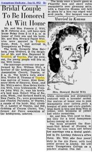 “Bridal Couple To Be Honored At Witt Home,” Youngstown Vindicator, Section C, Page 3. September 14, 1952, accessed January 6, 2013. http://news.google.com/newspapers?id=2s0_AAAAIBAJ&sjid=AFgMAAAAIBAJ&dq=wolford%20topeka&pg=744%2C3287947